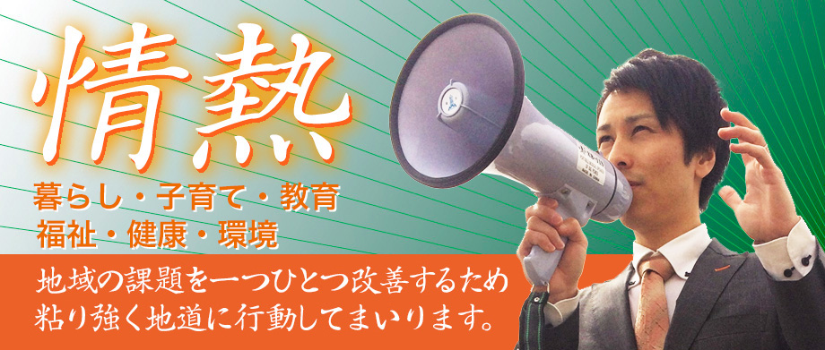 大学時代から「まちづくり」を研究し、社会人になってからはタウンニュースの記者として7年半、「まちづくり」や「市政」に深く関わってきました。そして、 その経験を生かし、私の大好きな座間をさらに魅力的なまちへ、そして、子どもから高齢の方までが安心・安全に暮らせるまちにしたいという思いから地元で政 治活動することを決意しました。これまでの経験から、まちづくりには行政や議員、自治会、商店街、NPO、民生委員、ボランティア、学生など様々な人々が携わり、熱意をもって取り組んでいることを実感しています。そして市民一人ひとりの熱意が市政を動かす様子もたくさん見てきました。